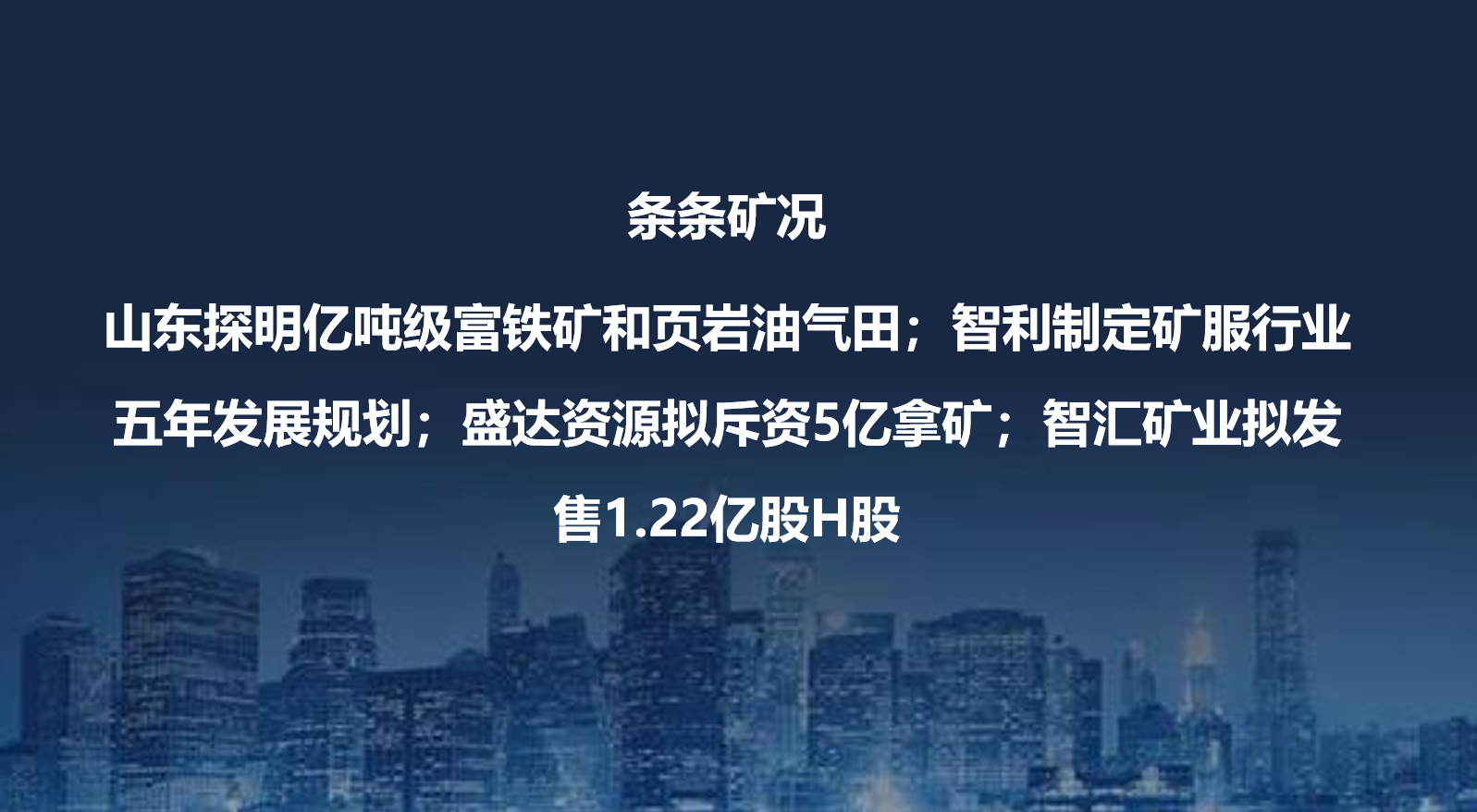 條條礦況|山東探明億噸級(jí)富鐵礦和頁(yè)巖油氣田;智利制定礦服行業(yè)五年發(fā)展規(guī)劃;盛達(dá)資源擬斥資5億拿礦;智匯礦業(yè)擬發(fā)售1.22億股H股