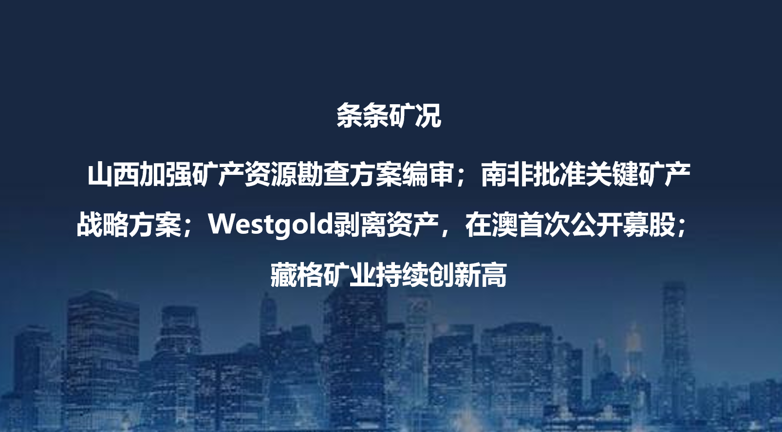 條條礦況|山西加強(qiáng)礦產(chǎn)資源勘查方案編審;南非批準(zhǔn)關(guān)鍵礦產(chǎn)戰(zhàn)略方案;Westgold剝離資產(chǎn),在澳首次公開(kāi)募股;藏格礦業(yè)持續(xù)創(chuàng)新高