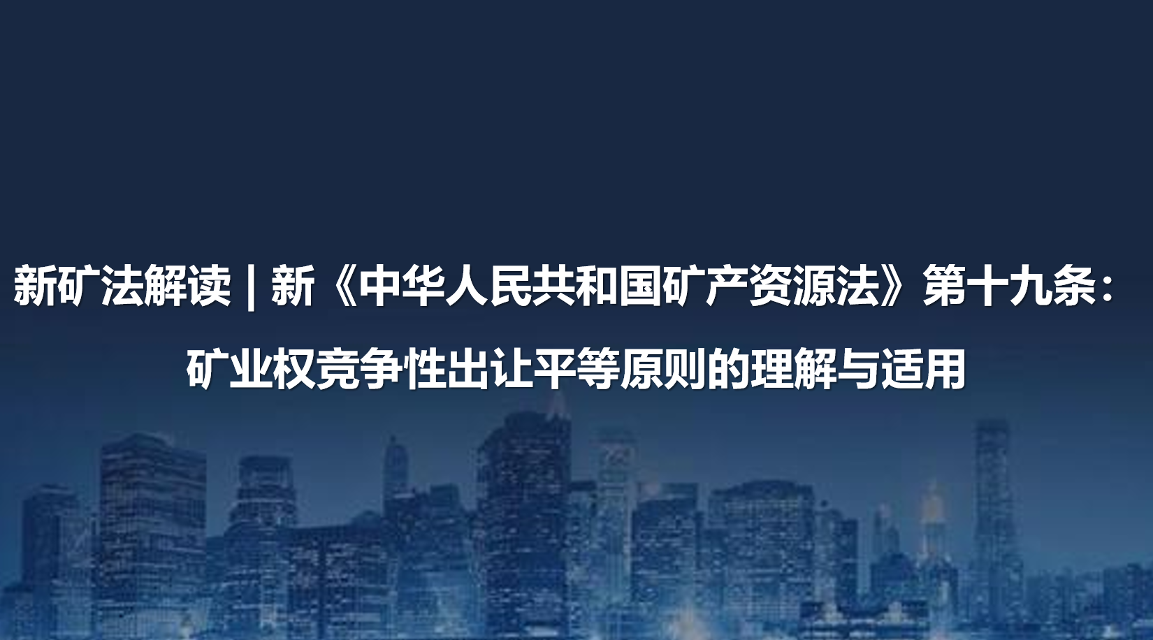 新礦法解讀 | 新《中華人民共和國礦產資源法》第十九條:礦業權競爭性出讓平等原則的理解與適用