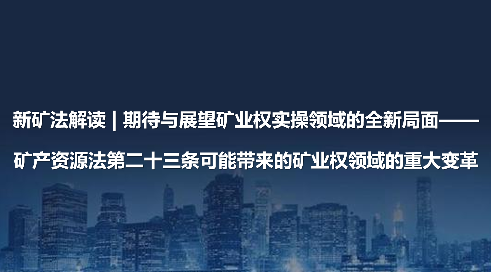 新礦法解讀 | 期待與展望礦業權實操領域的全新局面——礦產資源法第二十三條可能帶來的礦業權領域的重大變革