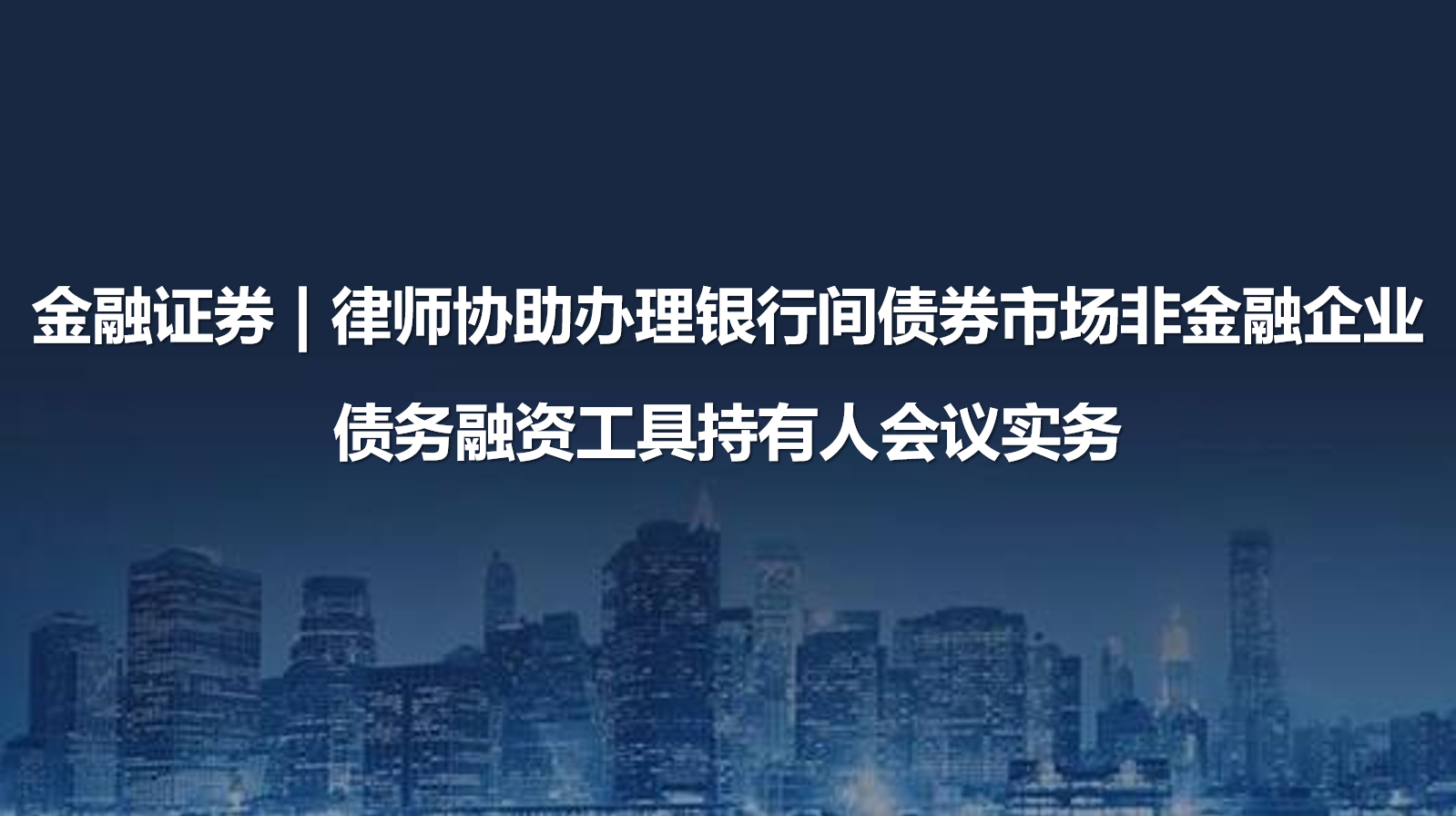 金融證券 | 律師協(xié)助辦理銀行間債券市場(chǎng)非金融企業(yè)債務(wù)融資工具持有人會(huì)議實(shí)務(wù)
