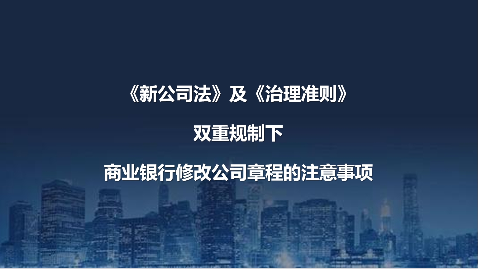 《新公司法》及《治理準則》雙重規(guī)制下——商業(yè)銀行修改公司章程的注意事項