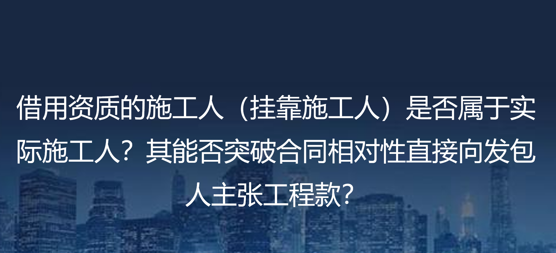 借用資質的施工人(掛靠施工人)是否屬于實際施工人?其能否突破合同相對性直接向發包人主張工程款?