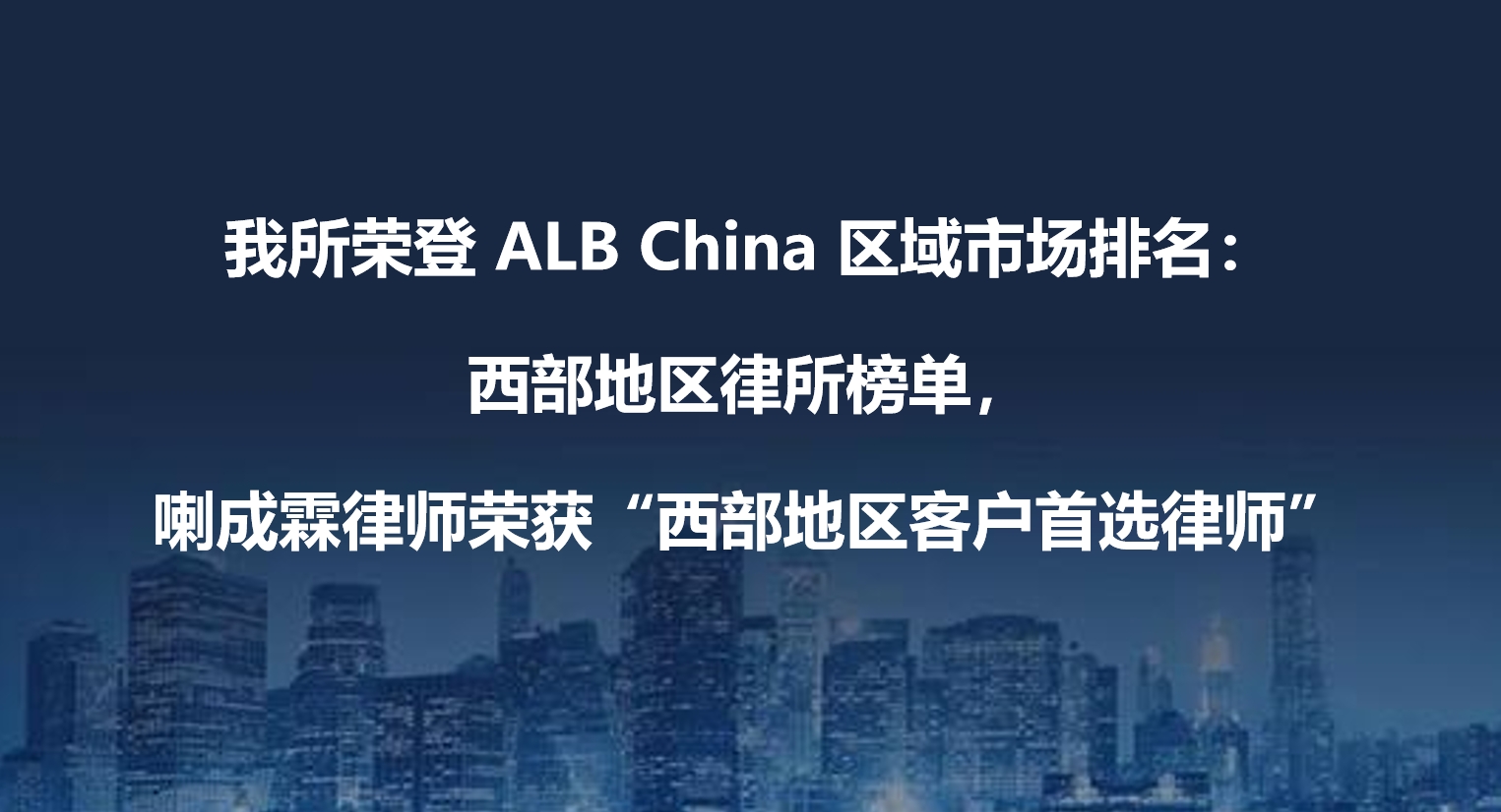 樹人榮譽 | 我所榮登 ALB China 區域市場排名:西部地區律所榜單,喇成霖律師榮獲“西部地區客戶首選律師”