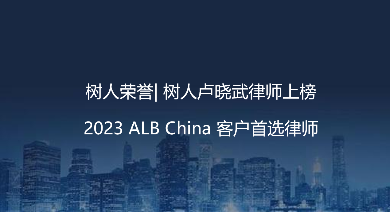 樹人榮譽| 樹人盧曉武律師上榜2023 ALB China 客戶首選律師