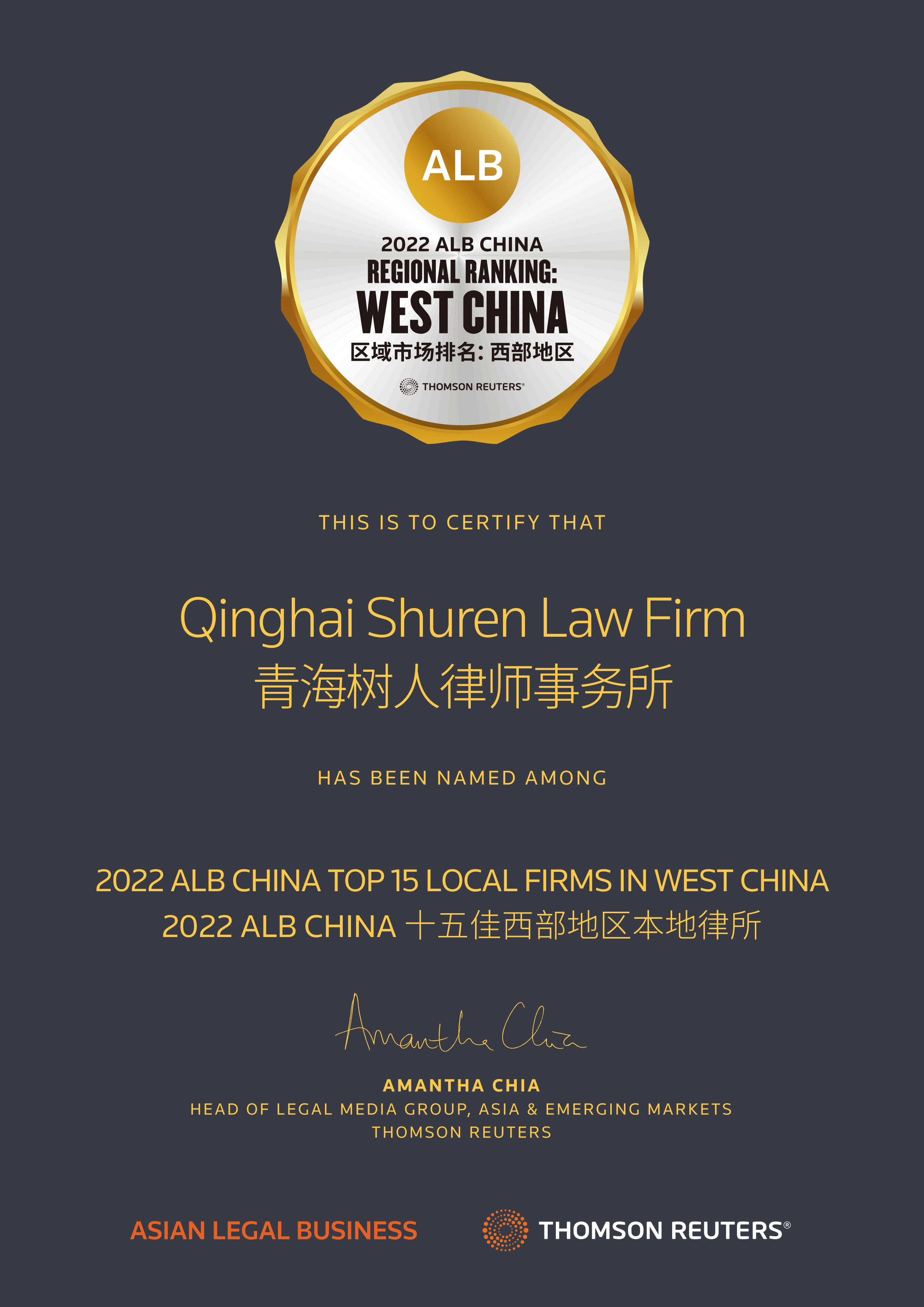 樹人榮譽(yù)丨樹人律師事務(wù)所榮登 ALB China 區(qū)域市場排名(西部地區(qū))
