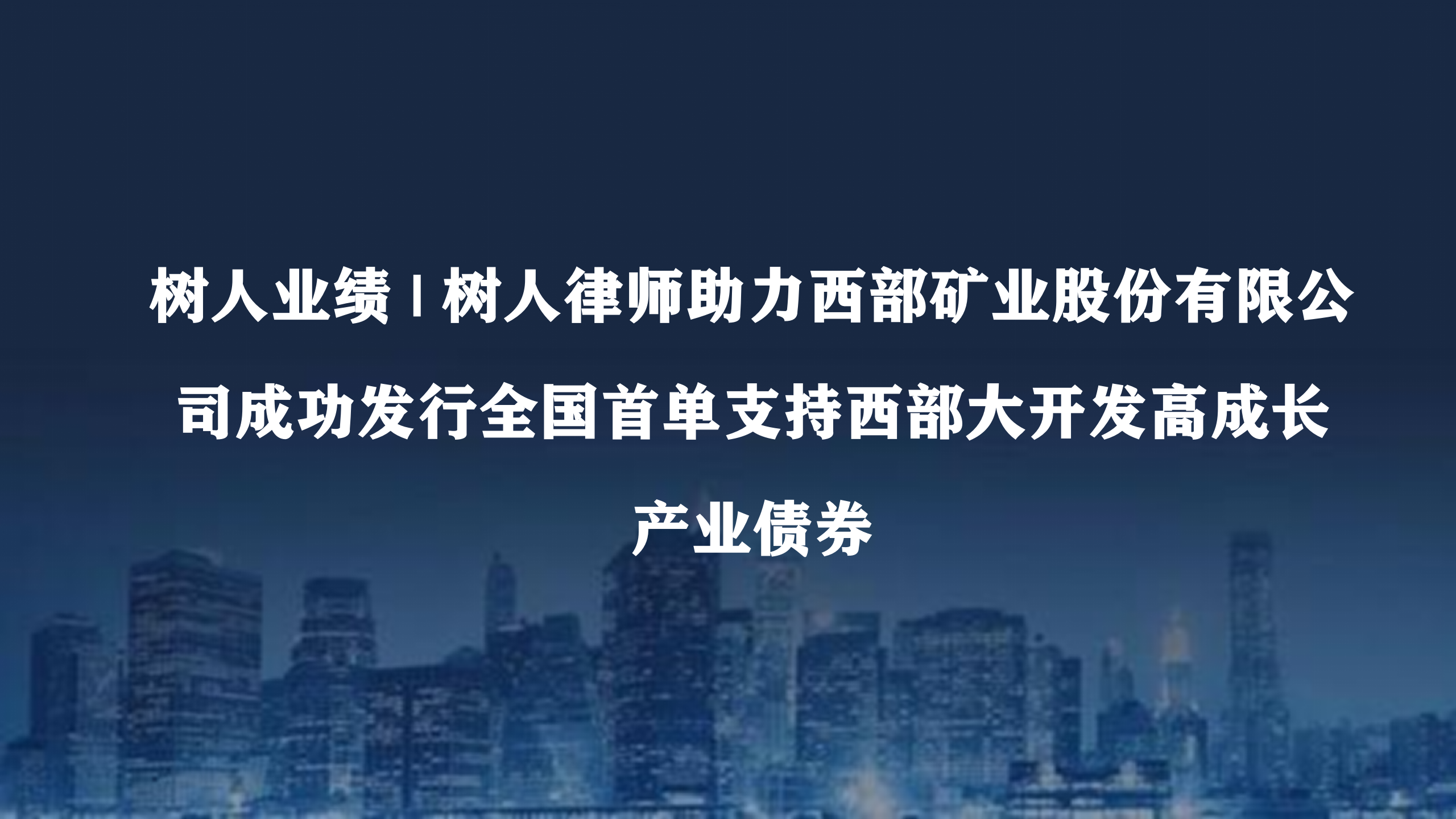 樹人業績 | 樹人律師助力西部礦業股份有限公司成功發行全國首單支持西部大開發高成長產業債券