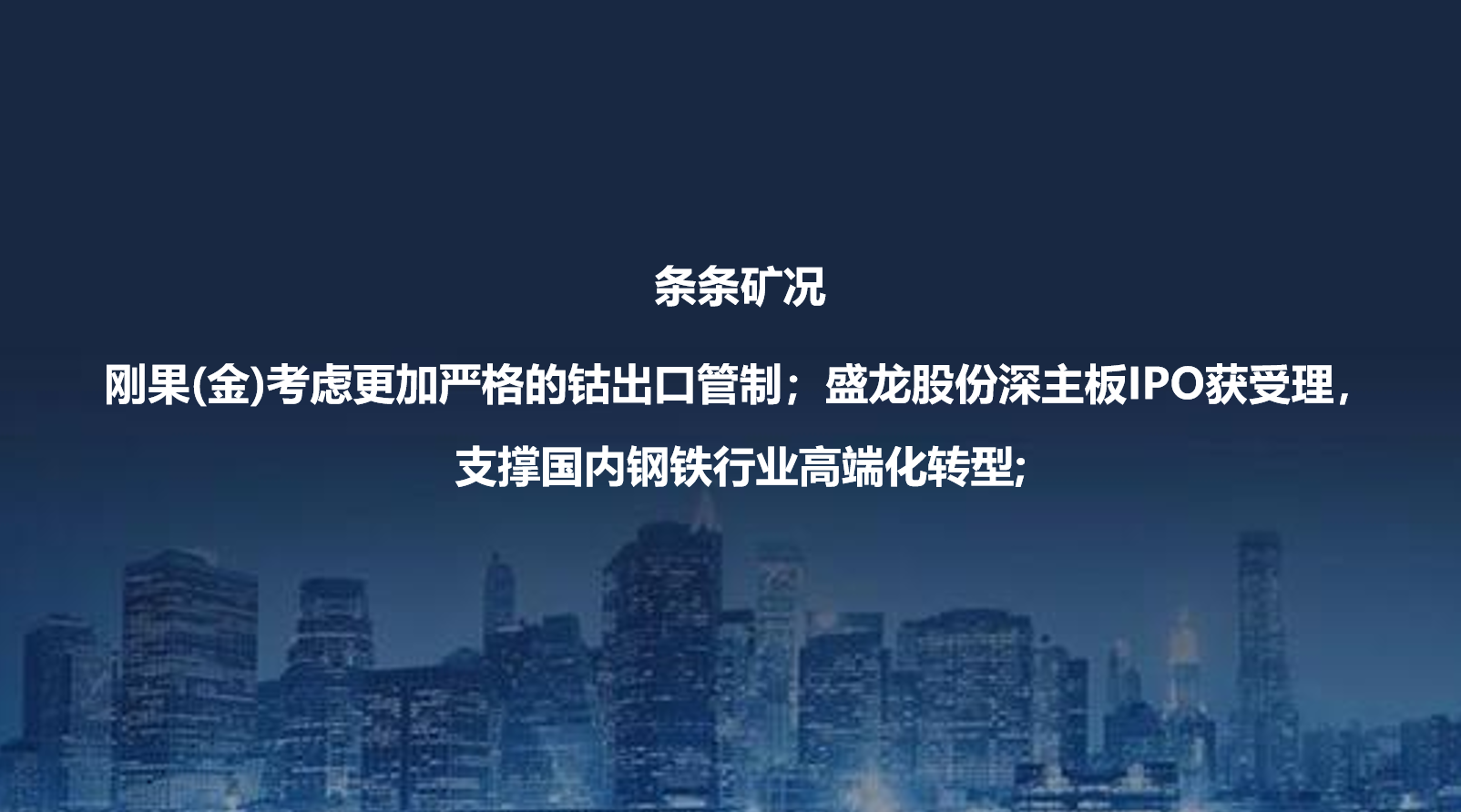條條礦況|剛果(金)考慮更加嚴格的鈷出口管制;盛龍股份深主板IPO獲受理,支撐國內鋼鐵行業高端化轉型;