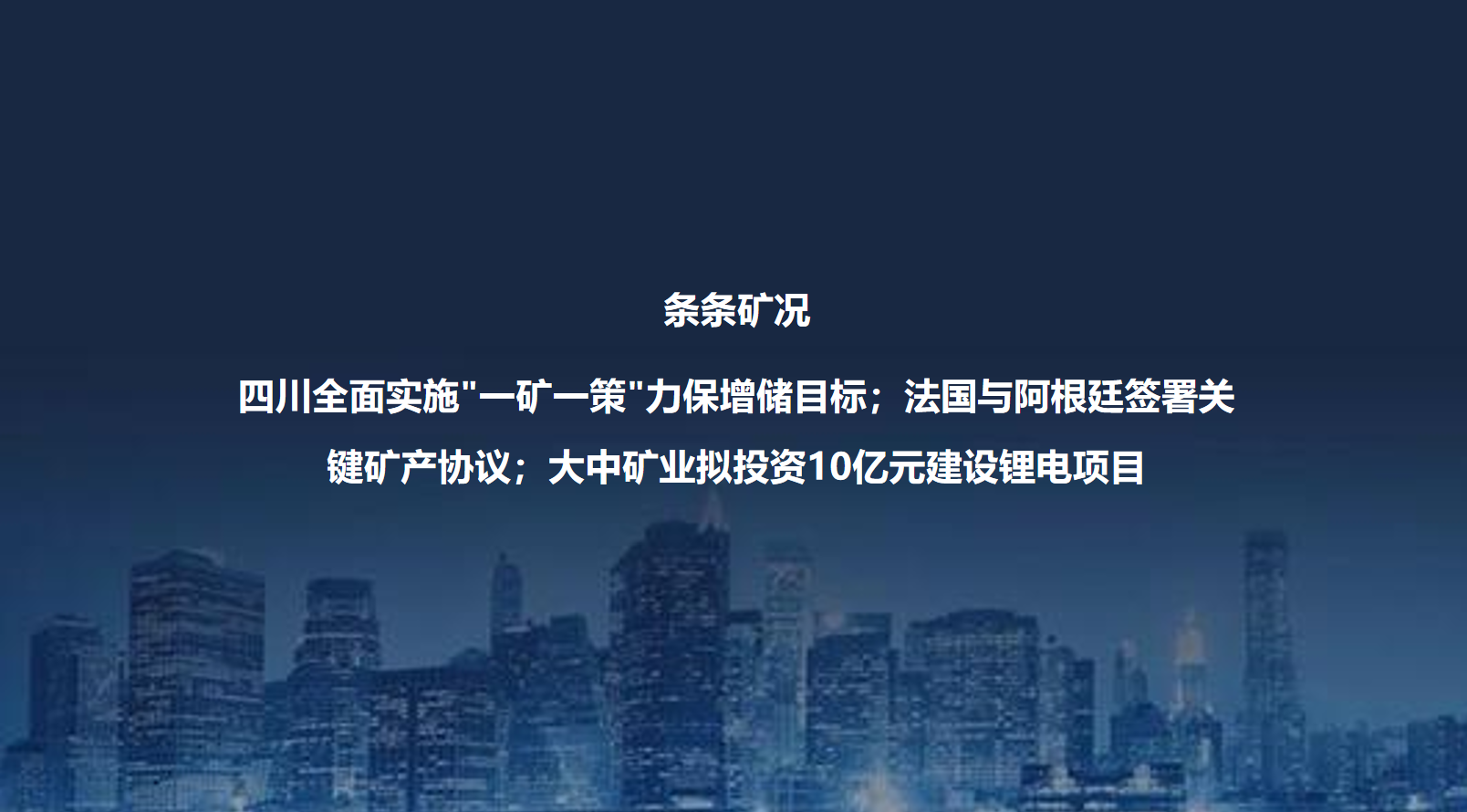 條條礦況|四川全面實施"一礦一策"力保增儲目標;法國與阿根廷簽署關鍵礦產協議;大中礦業擬投資10億元建設鋰電項目