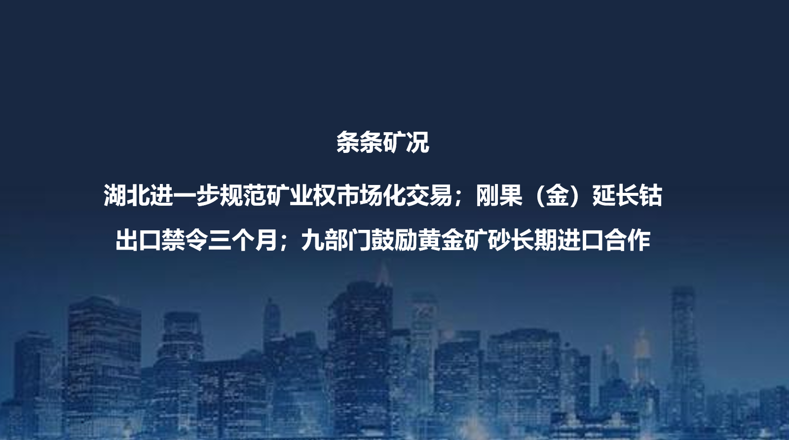 條條礦況|湖北進一步規范礦業權市場化交易;剛果(金)延長鈷出口禁令三個月;九部門鼓勵黃金礦砂長期進口合作