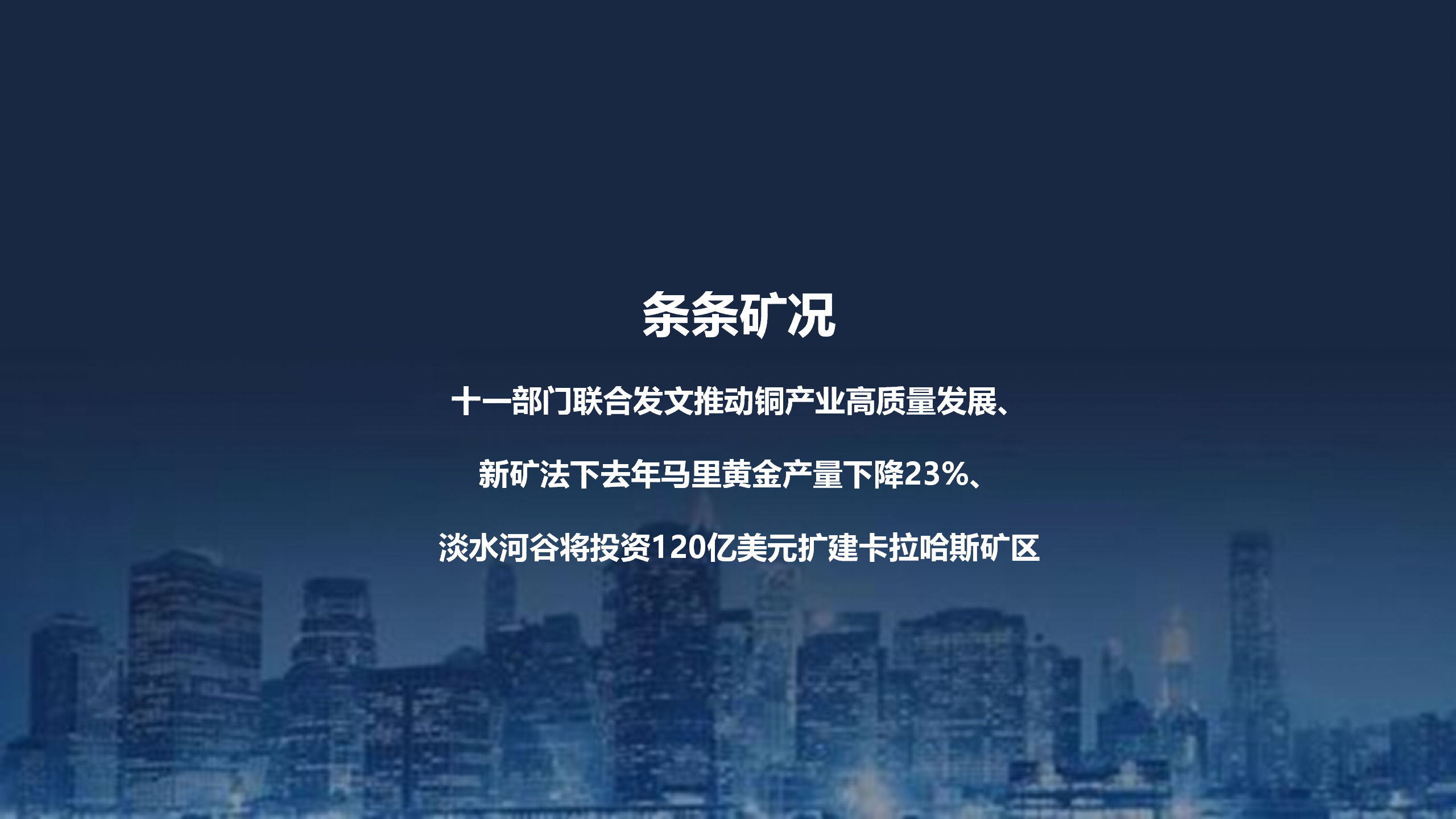 條條礦況|十一部門聯合發文推動銅產業高質量發展、新礦法下去年馬里黃金產量下降23%、淡水河谷將投資120億美元擴建卡拉哈斯礦區