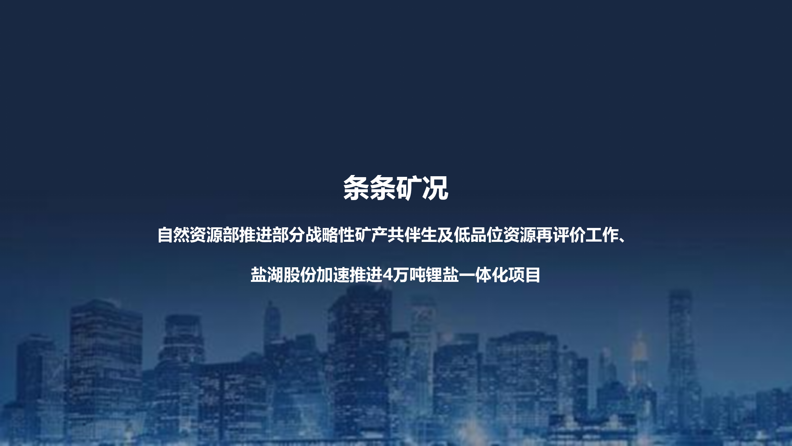 條條礦況|自然資源部推進部分戰略性礦產共伴生及低品位資源再評價工作、鹽湖股份加速推進4萬噸鋰鹽一體化項目