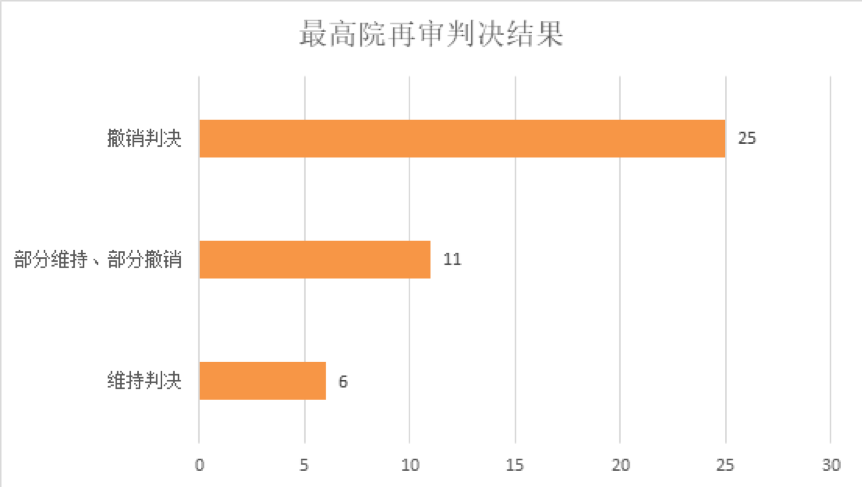 從上表看,最高院通過撤銷判決以及部分撤銷、部分維持判決對申請人再審行政訴訟案件進行再審時的改判率為85.71%。
