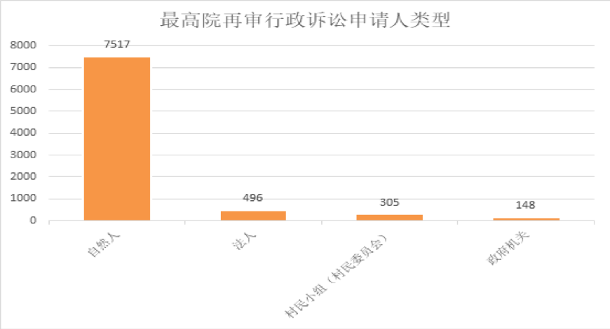 通過分析,最高院再審行政訴訟案件中的申請人包括自然人、法人、村民小組(村民委員會)等其他組織以及行政機關。不同申請人的數量如下: