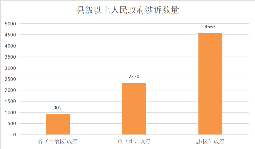 為進一步研究,我們分析了縣級以上人民政府作為被申請人的具體數據,具體情況如下:
