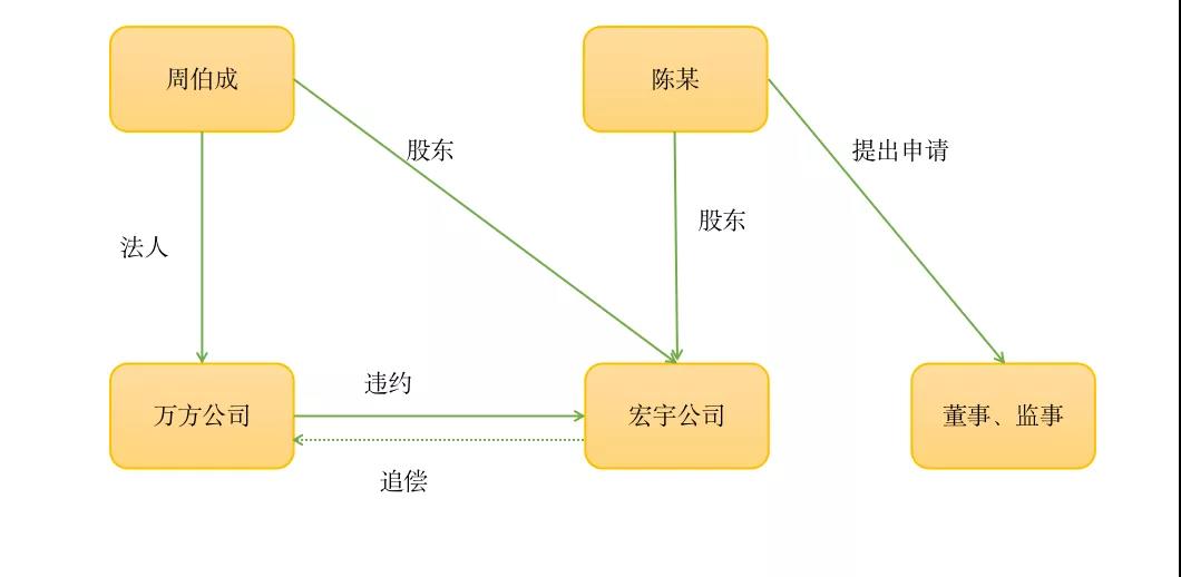 宏宇有限責任公司(以下簡稱“宏宇公司”)系懷化市南區(qū)項目的建設單位。經招標投標,南區(qū)項目由萬方公司中標施工。2011年8月28日宏宇公司與萬方公司簽訂《建設工程施工合同》,約定工程總建筑面積302103.85平方米,價款暫定36000萬元。合同專用條款第47條第12項特別約定:“本工程未經發(fā)包人同意不得分包,如承包人擅自分包,發(fā)包人有權要求承包人按分包工程總價的20%支付違約金。”萬方公司違反合同約定,未經宏宇公司同意,將工程分包給沒有資質的個人。按照合同約定,萬方公司應當向宏宇公司支付違約金7200萬元。與此同時,萬方公司的法定代表人周伯成屬于宏宇公司的股東,存在重大利益沖突,因此宏宇公司未提起訴訟追究萬方公司的違約責任。宏宇公司未設立監(jiān)事會、董事會,僅有董事黃某、監(jiān)事周某。陳某向董事與監(jiān)事發(fā)送書面函件要求對萬方公司提起訴訟,但是董事黃某與監(jiān)事周某均未提起。