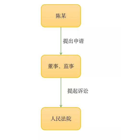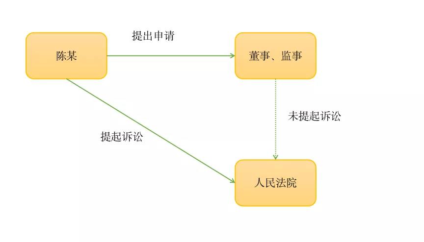 公司股東陳某先向董事、監(jiān)事提出書面申請,若被拒絕,或者提交書面申請后三十日內董事、監(jiān)事仍未提起的,由股東直接以自己名義提起。