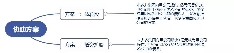 甲公司欠乙公司人民幣1億元,甲公司因現金流緊張,無法按期償還,向米多多集團(米多多集團為非金融機構、增值稅一般納稅人,且與甲、乙無關聯關系)尋求幫助,米多多集團高層領導經討論,形成了以下兩種協助方案: