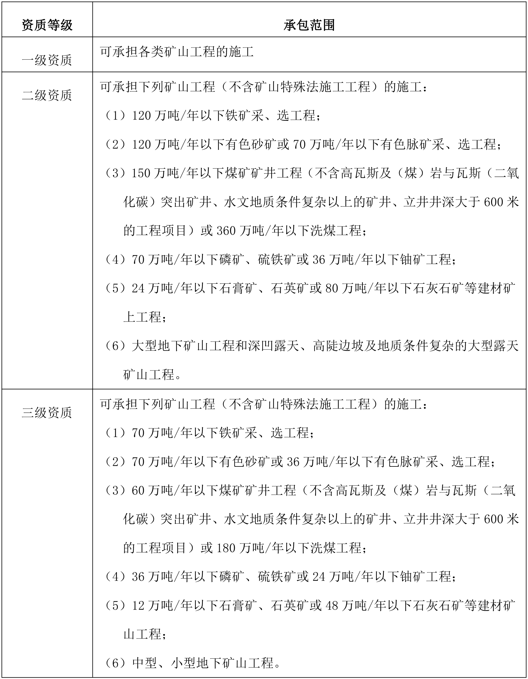 附件:關(guān)于礦山工程承包施工資質(zhì)及相應(yīng)承包范圍介紹