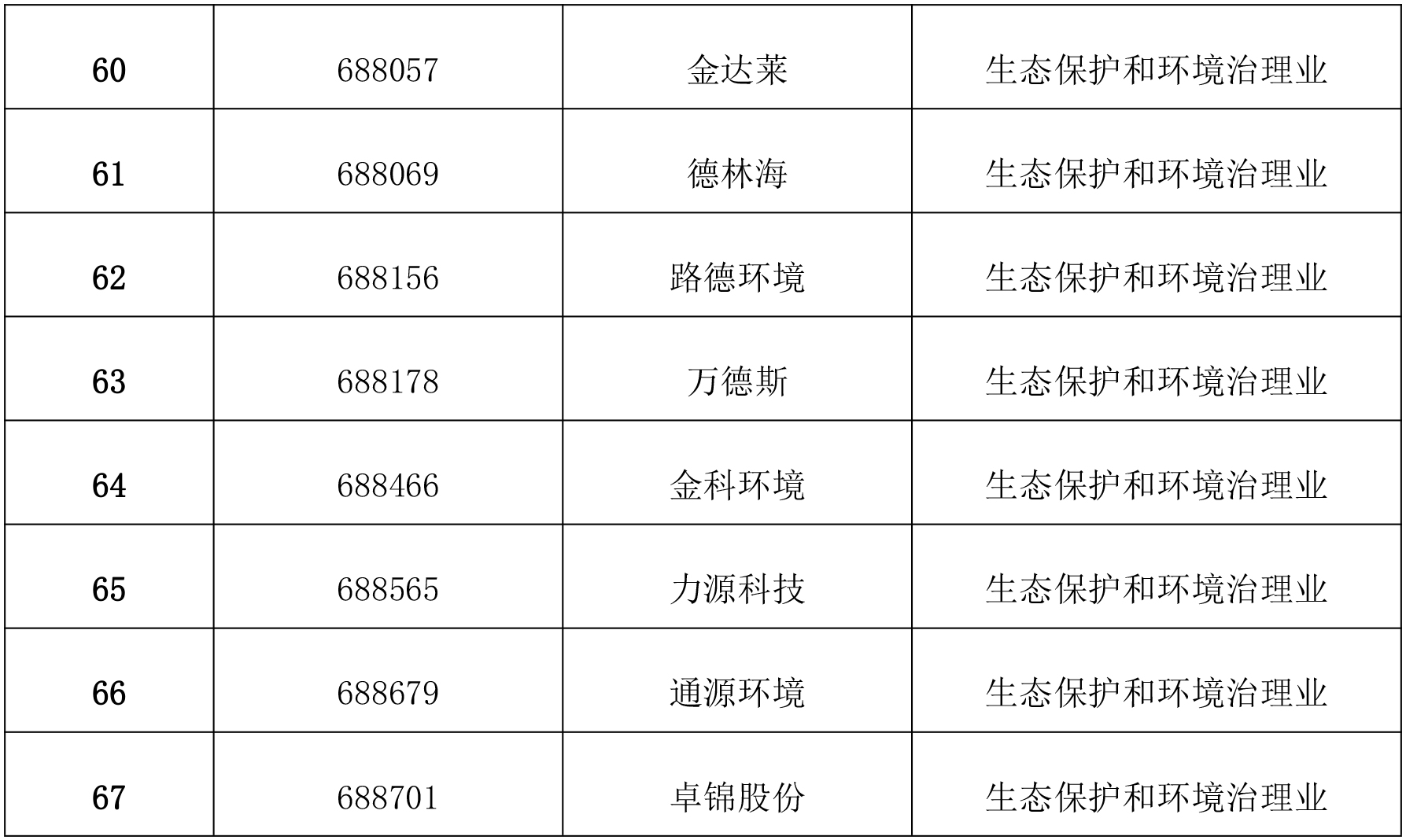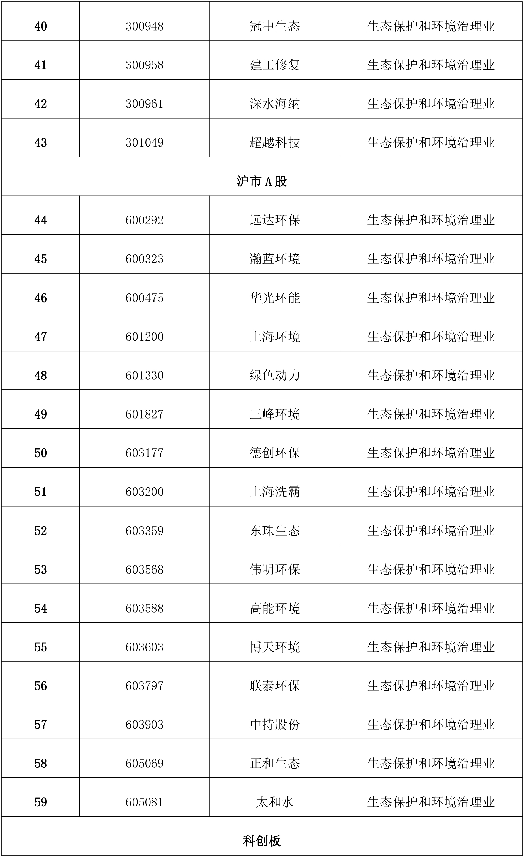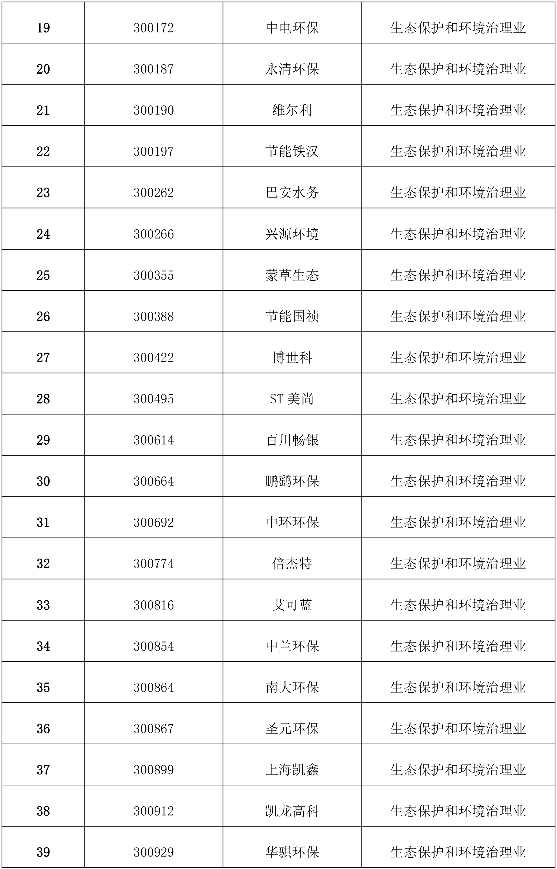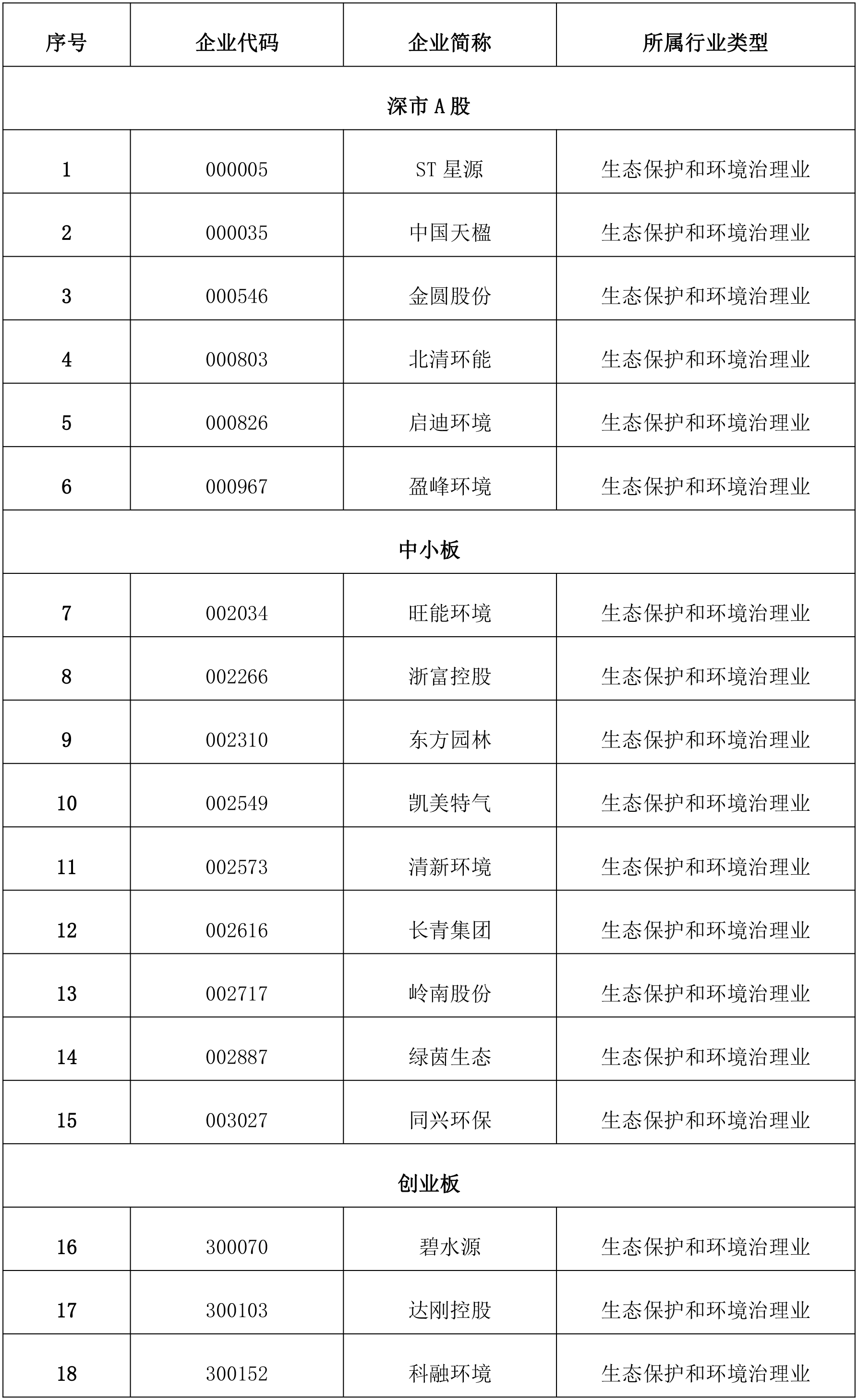 根據中國證券監督管理委員會官網公布的最近一期上市公司行業結果分類,作為生態保護和環境治理類的企業如下: