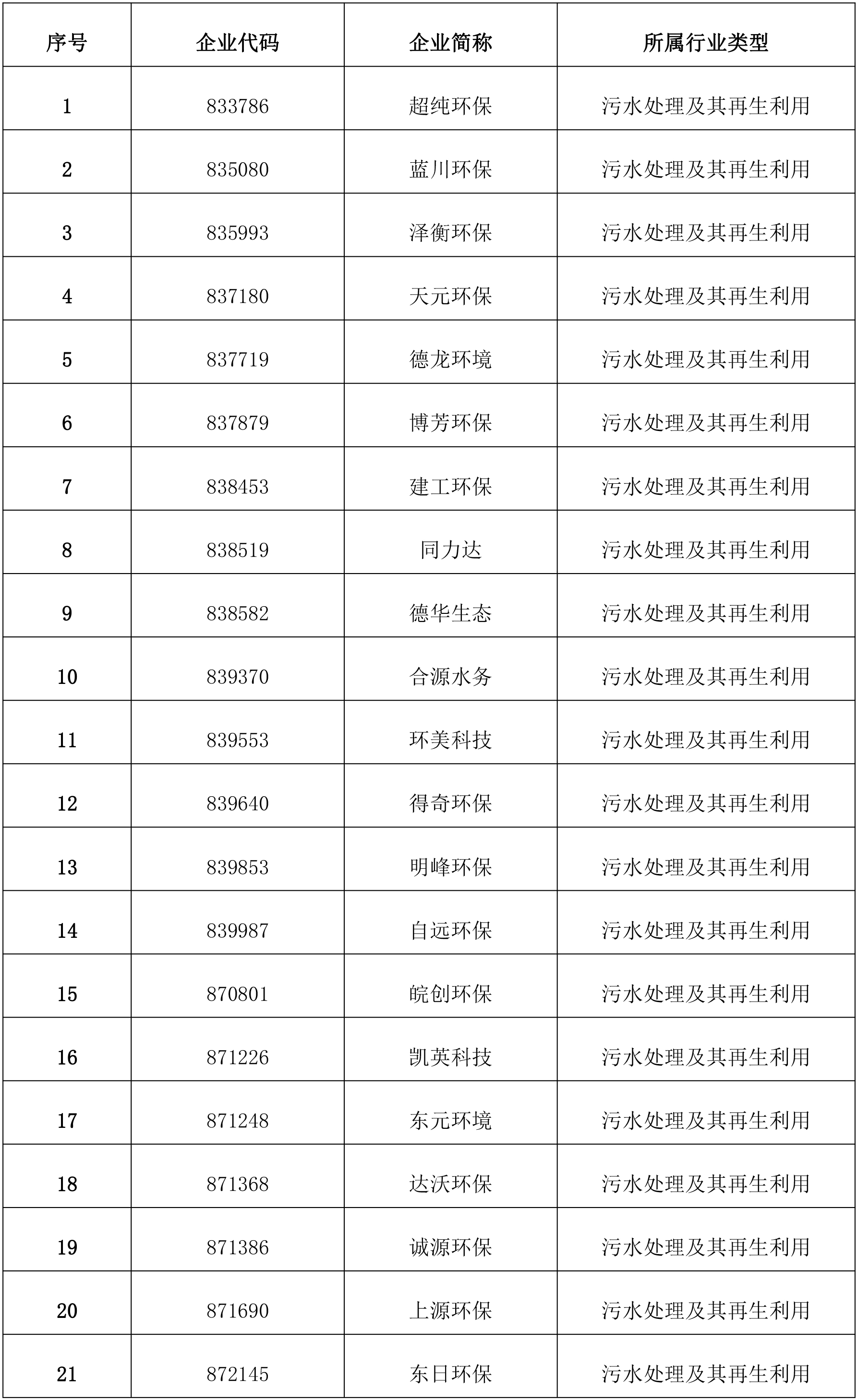 二、全國中小股轉系統掛牌污水處理成長型企業