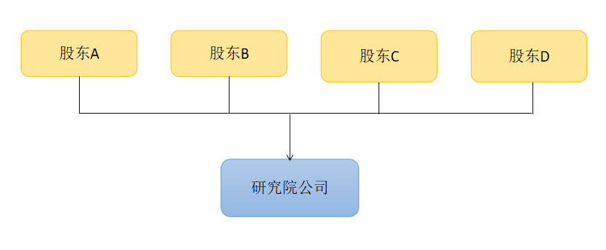 直接持股是指股東以自然人身份直接持有公司股權(quán)。科研院所改制后,部分職工或改制后的大股東多以直接持股的方式持有公司股權(quán)。以某研究院公司為例,大股東A、B、C、D均直接持有公司股權(quán),如圖所示: