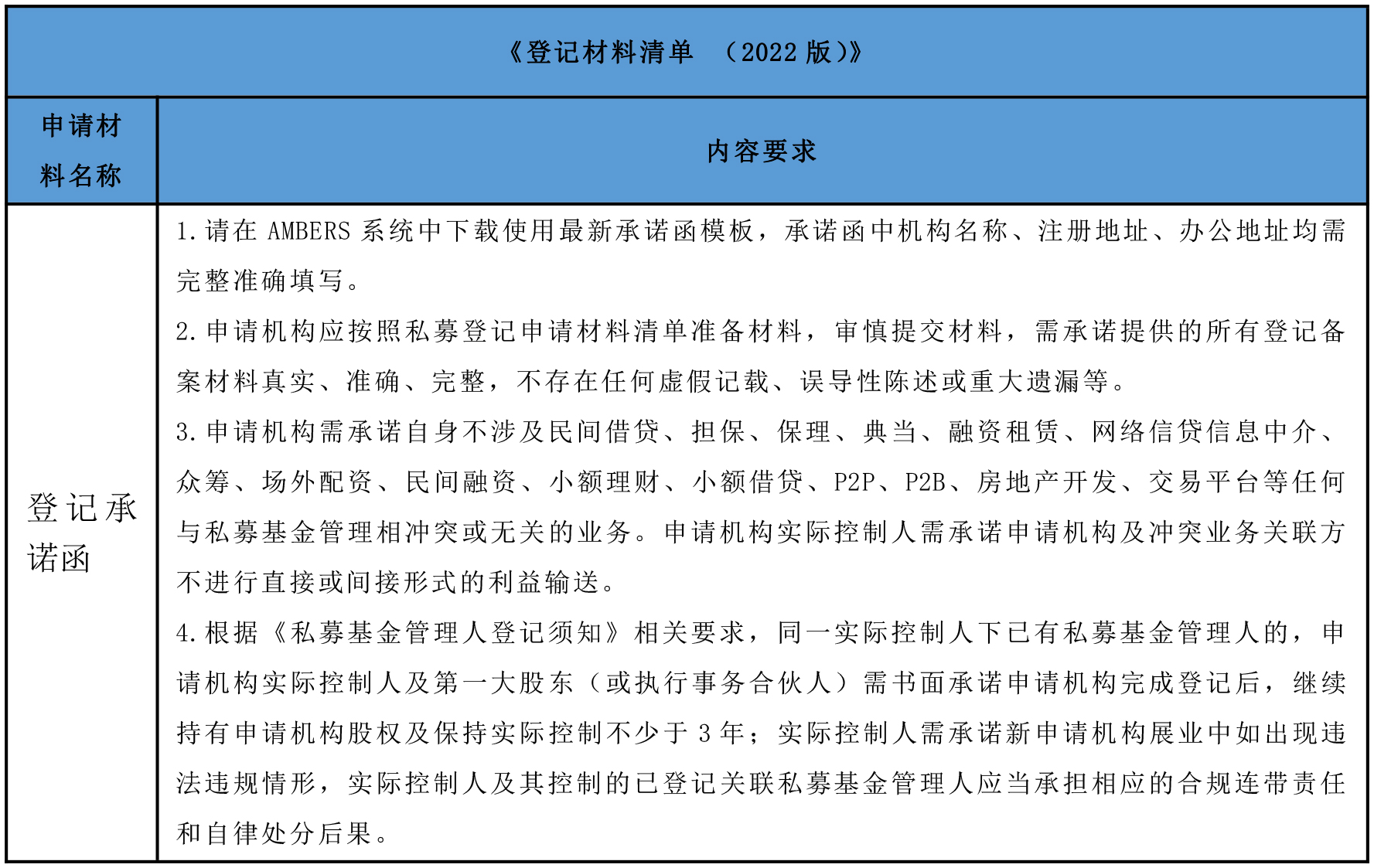本次更新后,將“新設同類型私募基金管理人合理性說明”及“關聯私募基金管理人自律合規連帶責任承諾函”整合到“登記承諾函”及“新設私募基金管理人合理性說明及集團各私募基金管理人合規風控安排”中,也不再要求關聯私募基金管理人出具承諾函,改為在“登記承諾函”中由實際控制人承諾,簡化了原有材料要求。
