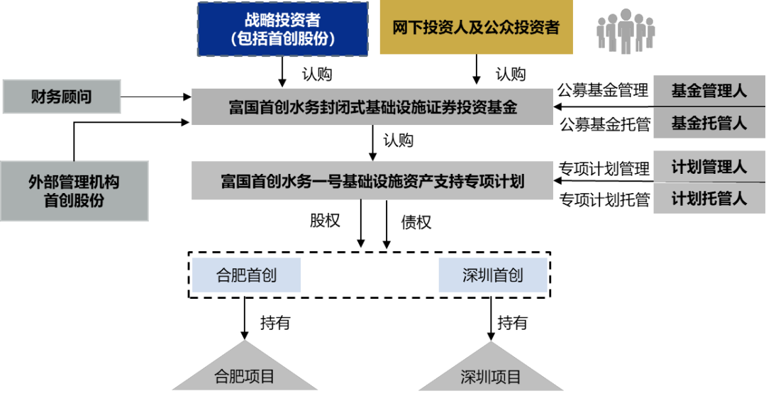 以富國首創水務REIT為例,經檢索巨潮咨詢網(http://www.cninfo.com.cn/),富國首創水務REIT的交易結構如下: