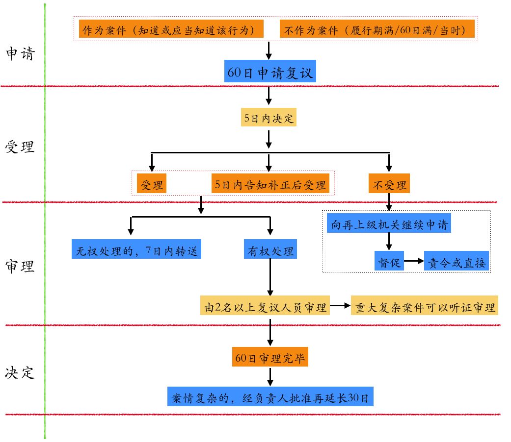 礦業權人針對具體行政行為申請復議的流程如下圖所示:
