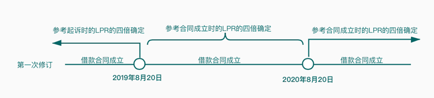 如上圖所示,《民間借貸司法解釋第二次修訂》改變了《民間借貸司法解釋第一次修訂》中所確定的“一刀切”地適用一年期的貸款市場報價利率的四倍的標準。《民間借貸司法解釋第二次修訂》以2020年8月20日為分界點,對于借款合同成立于2020年8月20日前的民間借貸糾紛案件,出借人可以主張按照合同成立時所適用的司法解釋所確定的利率保護上限計算自借款合同成立后至2020年8月19日期間的利息,對于借款合同成立于2020年8月20日后的民間借貸糾紛案件,繼續適用一年期的貸款市場報價利率的四倍。