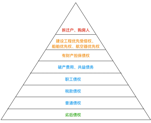 注:本文圖中關于債權清償的順序并不必然是破產程序中的絕對順位,具體債權順位需要管理人結合債權人申報材料,依法予以審查確認。