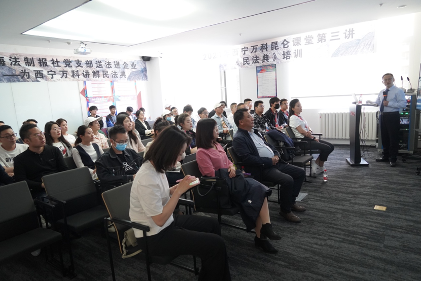 5月13日,青海樹人律師事務所與青海法制報社黨支部聯合開展了送法進企業活動,我所律師喇成霖為西寧萬科企業有限公司員工講解民法典相關內容,踐行“我為群眾辦實事”,讓黨史學習教育走深走實。