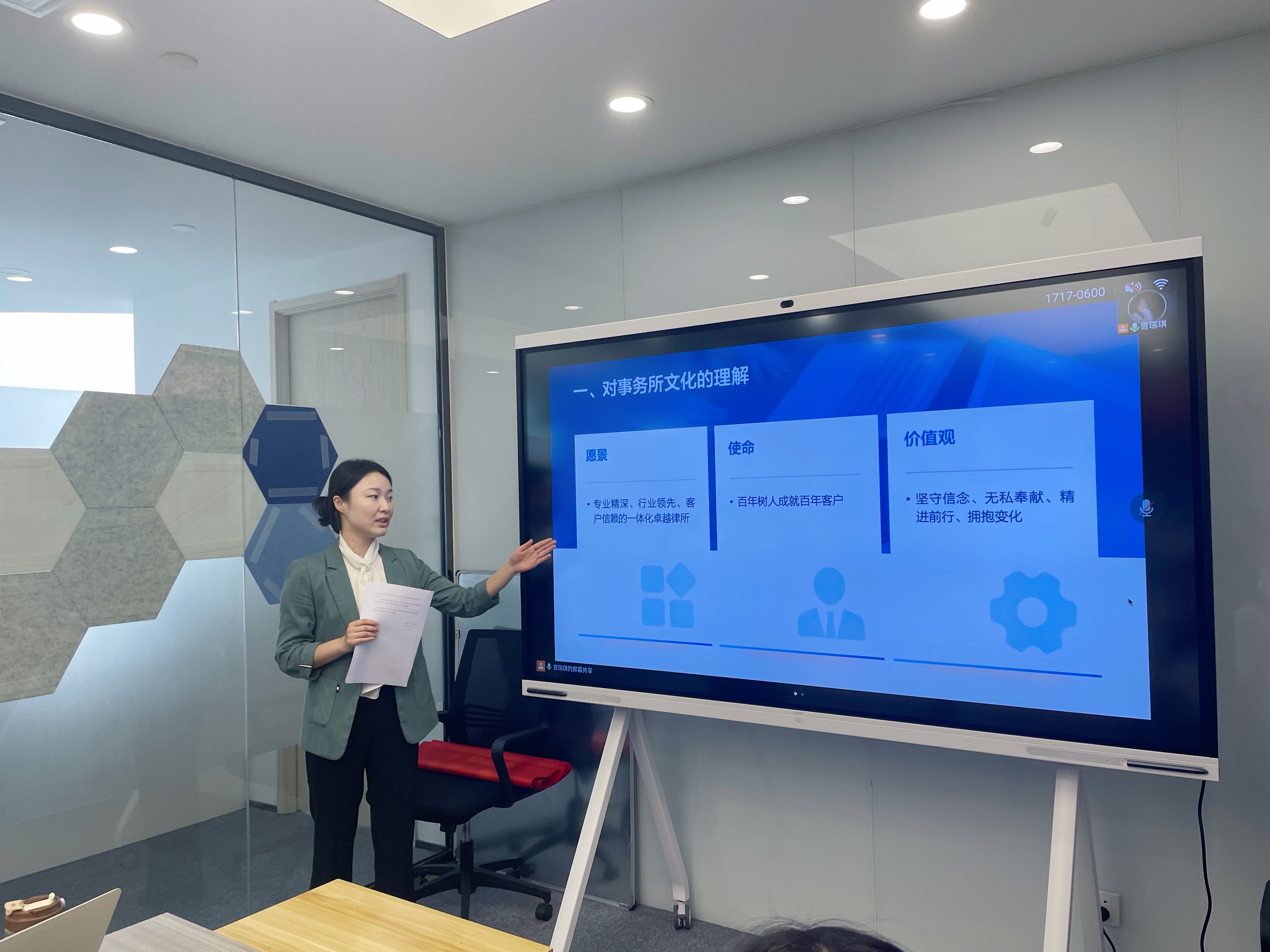 分享會伊始,由律所合伙人孫瓊律師為馬淑玉律師頒發了“準時達人”獎項,準時達人是為了鼓勵律師及時地進行工作記錄,提高客戶服務與反饋效率。孫瓊律師表示專業、高效的法律服務一直是樹人所秉持的理念,樹人所的新生力量們也在工作中踐行著“客戶至上”的原則,為我們的發展不斷注入新生機。