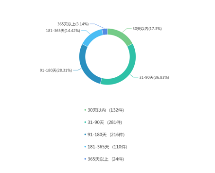 從審理期限可以看到,執(zhí)行異議之訴的審理時(shí)間更多處在31-90天的區(qū)間內(nèi),平均時(shí)間為118天。