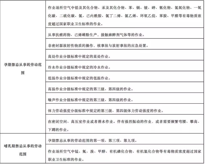 答:依據《女職工勞動保護特別規定》規定,女職工特殊時期內崗位規定歸納為下表: