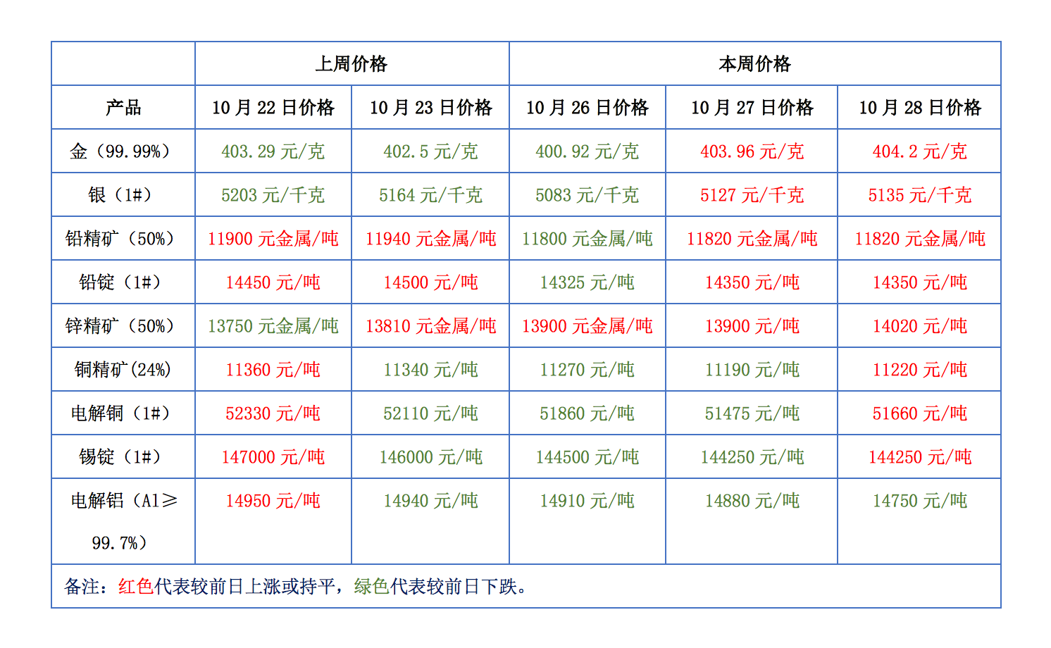 下表為本周金、銀、鉛、鋅、銅、鋁等主要有色金屬礦產(chǎn)品價格變動情況: